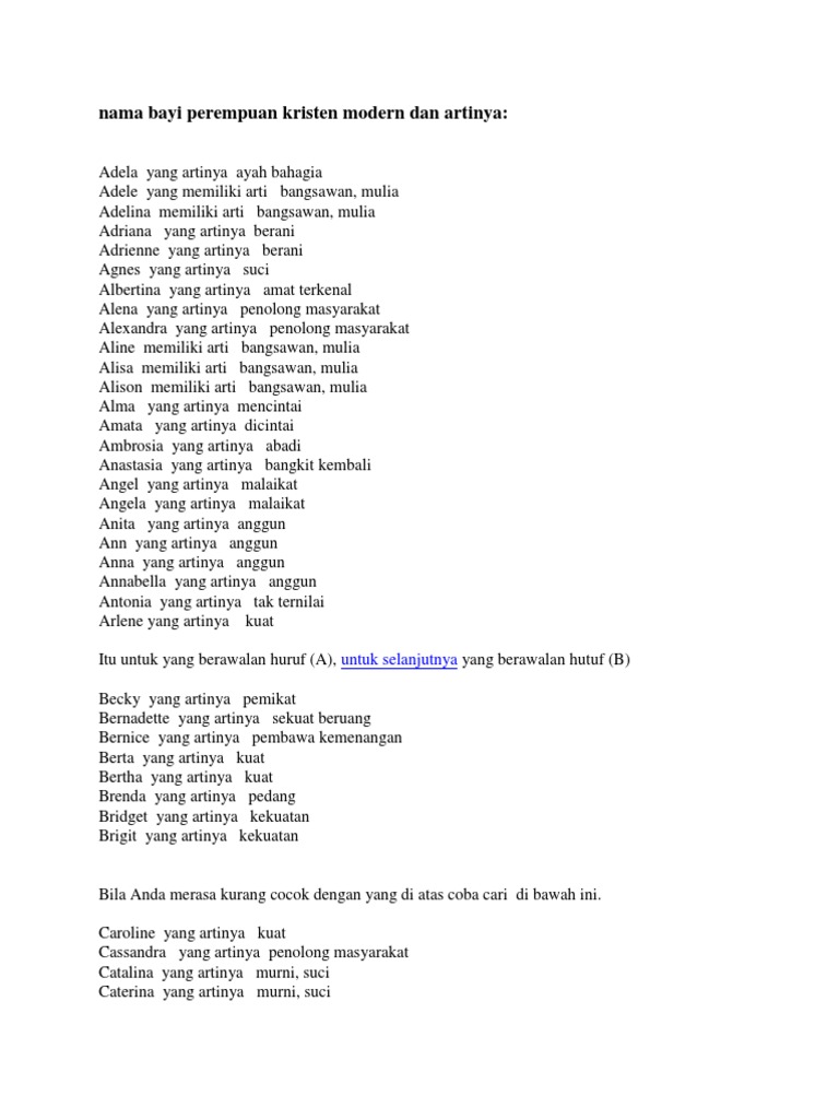 Inspirasi nama-nama bayi perempuan Kristen dengan arti yang bagus sebagai. Tapi tak sedikit juga yang masih belum menentukan pilihan nama. Gadis perawan anugerah Tuhan yang mulia dan baik hati.